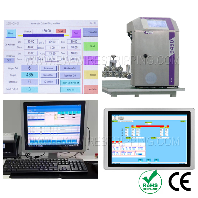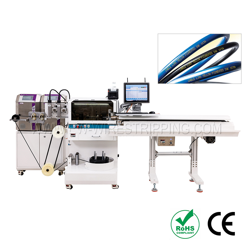 ● Станок оснащен двумя струйными принтерами с возможностью выбора цвета чернил для кодировки. Кроме того, встроенное устройство автоматической подачи проволоки обеспечивает точность резки.