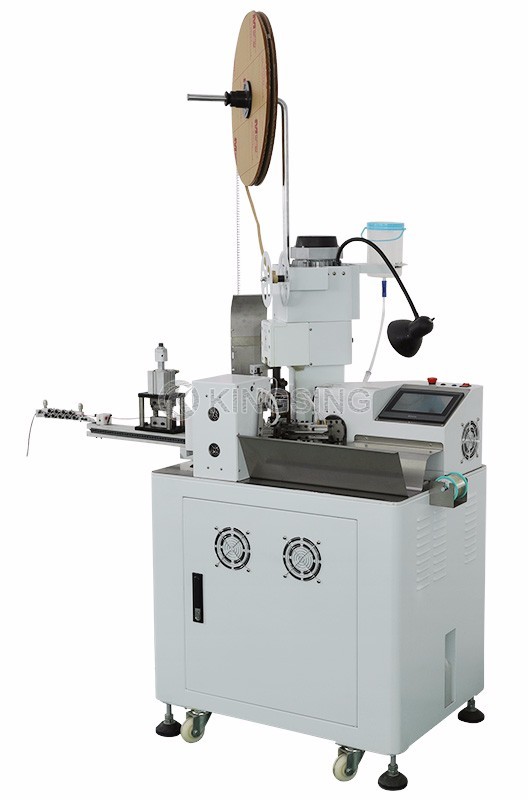 Этот станок специально разработан для обработки двухпараллельных проводов. Он объединяет функции резки проволоки, зачистки проводов, разделения проводов, скручивания проводов, лужения и обжима клемм. Пресс-форма для разделения проводов может автоматически пробивать и разрезать два конца двойного комбинированного провода, скручивать провод и припаивать на одном конце, а также обжимать клемму на другом конце. Одна машина может обрабатывать множество различных продуктов. При замене проводов и клемм необходимо заменить только соответствующую форму для разветвления и формы для обжима.