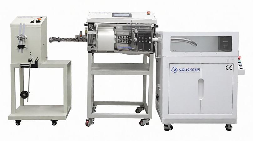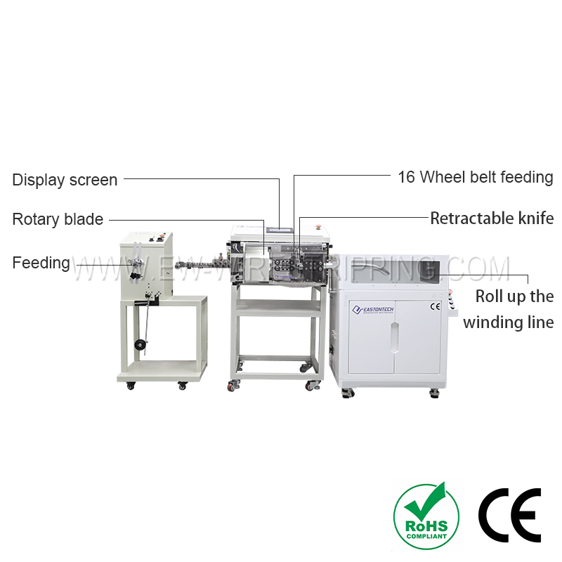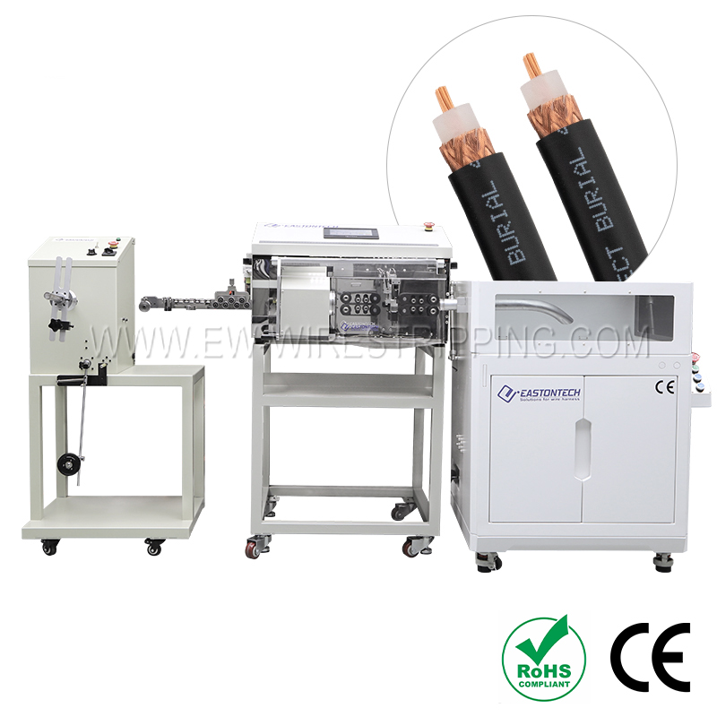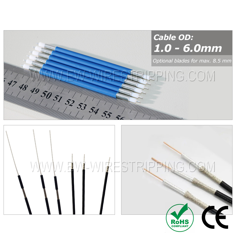 ● EW-06H-3+C — это полностью автоматизированный многоступенчатый станок для резки и зачистки коаксиальных кабелей промышленного назначения и одножильных проводов диаметром от 1,0 до 6,0 мм (опция для диаметров до 8,5 мм).