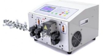 Станок для резки и зачистки провода DY-1215 – это базовый автоматический электропневматический аппарат, который может втягивать, отрезать и зачищать от изоляции кабельную продукцию для её подготовки к дальнейшим операциям. Втягивание выполняется двумя парами резиновых роликов с собственными приводами с регулируемой скоростью. Лезвие действует усиленное пневматикой, поэтому для работы требуется внешний компрессор (на боковой панели есть соединительный редуктор). Цикл программируется через экран с сенсорными кнопками. Интерфейс цветной и интуитивно понятный, длительное обучение оператору не требуется.
