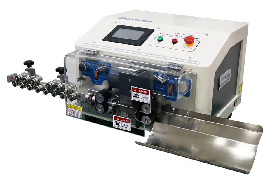 Sedeke ESC-BX8S — это автоматическая машина для резки и зачистки кабелей в оболочке, также называемая машиной для зачистки многожильных кабелей. Машины для зачистки многожильных кабелей используются в автоматизированных линиях по обработке проводов и кабелей для быстрого и точного одновременного снятия изоляции с нескольких жил кабеля. Обычно они имеют несколько лезвий для зачистки, которые можно регулировать в зависимости от размера кабеля и толщины изоляции.