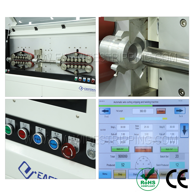 ③Зачистка внутренней и внешней оболочки: многожильные провода могут обрабатываться одновременно, максимальная ширина обработки составляет 28 мм, а максимальное количество жил — 16.
