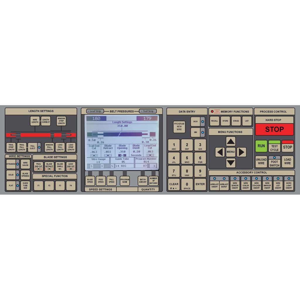Модель 930 Compu-Strip® — это полностью программируемый настольный станок для измерения, резки и зачистки проводов. Модель 930 использует высокомоментные шаговые двигатели, мощную роликовую подачу материала и прецизионный шариковинтовой механизм для лезвий. Этот мощный станок обрабатывает многожильный провод от 10 до 32 AWG, плоский кабель шириной до 0,437 дюйма и многожильный кабель диаметром до 0,276 дюйма. (Примечание: все характеристики зависят от материала.) Модель 930 включает в себя цифровые датчики положения подающего ролика, а также простую в использовании электронную панель управления. Эксклюзивное удобное программное обеспечение Carpenter и улучшенная компоновка кнопок делают модель 930 очень простой в использовании. Все стандартные функции станка имеют свои собственные выделенные клавиши, что значительно сокращает количество «скрытых меню» и «закрытых экранов». Для новых пользователей функция «Программирование нового провода» пошагово проводит оператора через каждое поле, необходимое для программирования новой конфигурации провода.