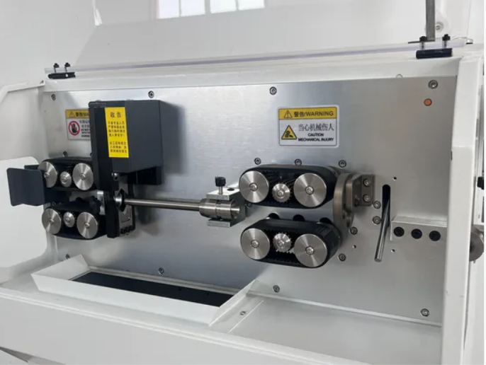 2. Сила прижима входящего и исходящего колес может быть установлена непосредственно в программе без ручной регулировки давления колеса. Исходное колесо также оснащено функцией автоматического подъема. При зачистке головки провода исходящее колесо автоматически поднимается, предотвращая его смещение. Таким образом, длина зачистки головки провода значительно увеличивается, а высота подъема исходящего колеса также может быть установлена непосредственно в программе.