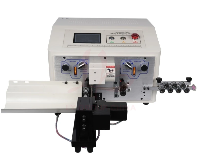 На станке ЖК-экран в режиме человеко-машинного взаимодействия, отличается приятным внешним видом, простотой в эксплуатации, удобством обслуживания, стабильной работой, высокой скоростью и точностью. Длина проволоки может быть установлена произвольно, параметры зачистки и окончания линии также могут быть изменены по запросу заказчика, обеспечивается различная степень зачистки проволоки