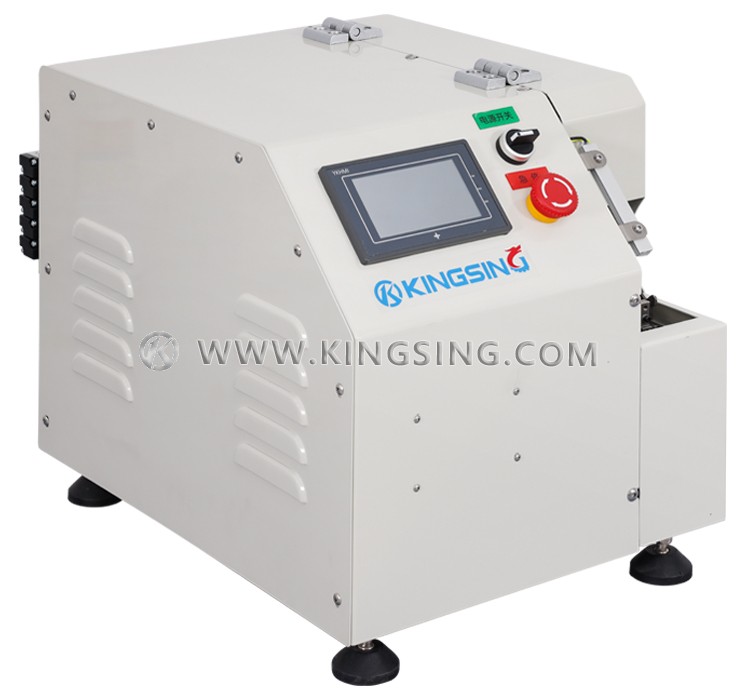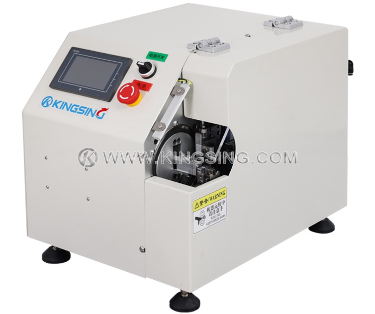 Эта машина в основном используется для обмотки медной фольги для экранирования кабеля. Приспособление настраивается в соответствии с кабелем, оператору нужно только вставить конец кабеля в приспособление, после чего он может автоматически завершить резку и обмотку ленты из фольги. Параметры можно регулировать с помощью сенсорного экрана, а производительность может достигать 800–900 шт./час.