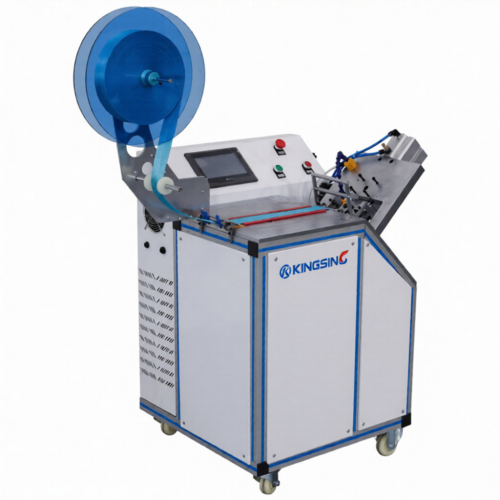 Это ультразвуковой станок для резки ленты, он автоматически запаивает края во время резки ленты, кромка получается аккуратной и гладкой, без заусенцев и отслоений, эффект резки превосходный, что выглядит лучше, чем при традиционной резке горячим ножом.
