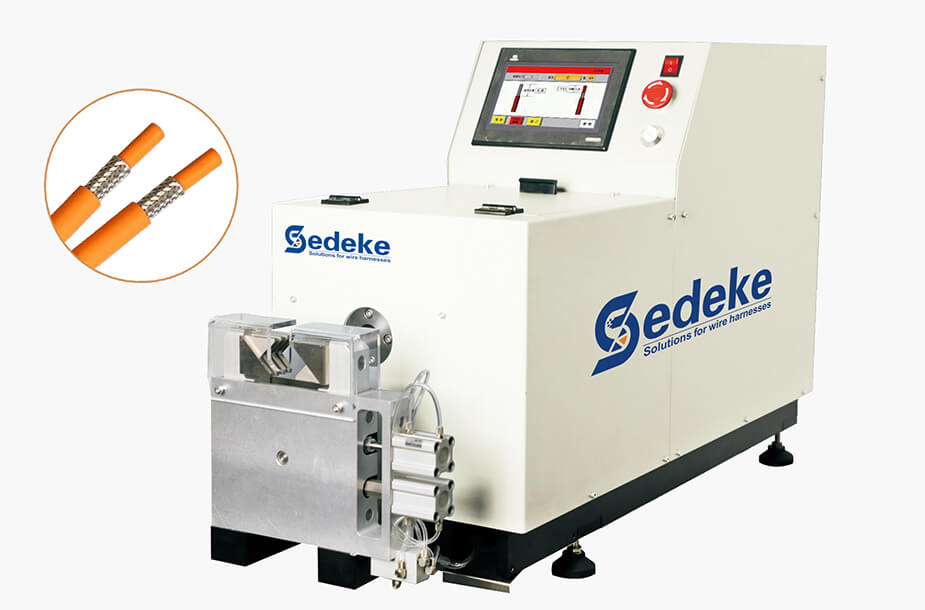 Машины для обработки экранирования кабеля в основном применяются в промышленности для изготовления автомобильных жгутов новой энергии, жгутов проводов для зарядных свай, сигнальных кабелей с оплеткой и т. д.