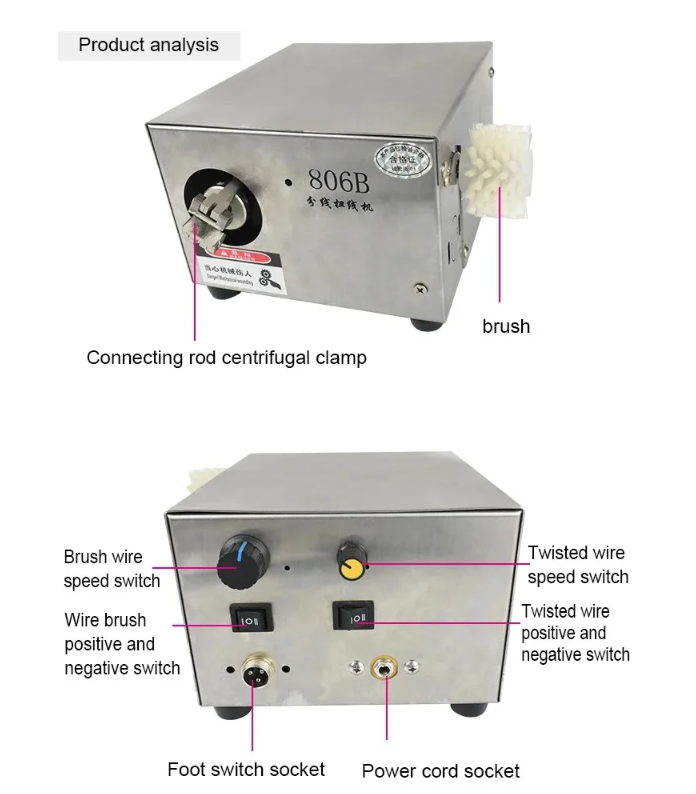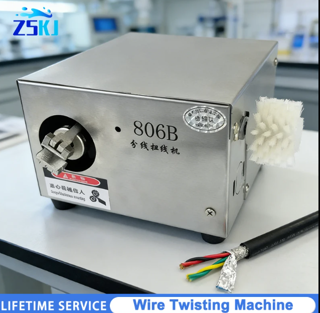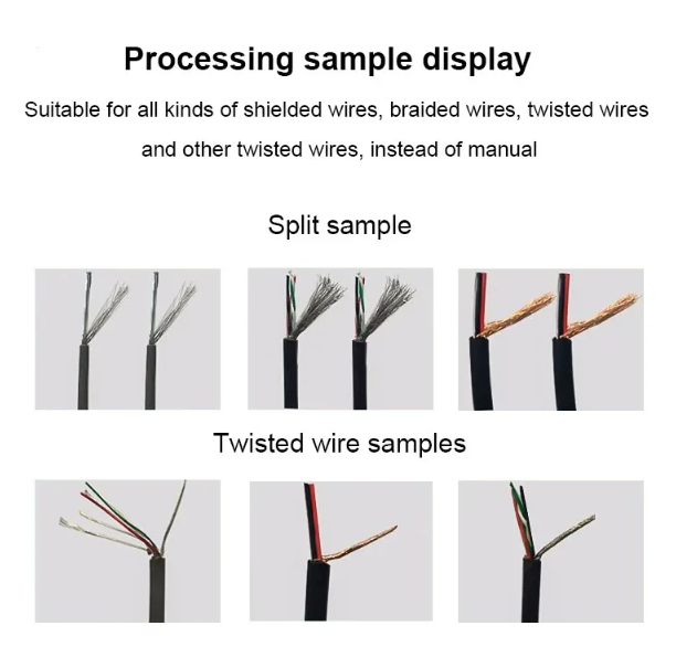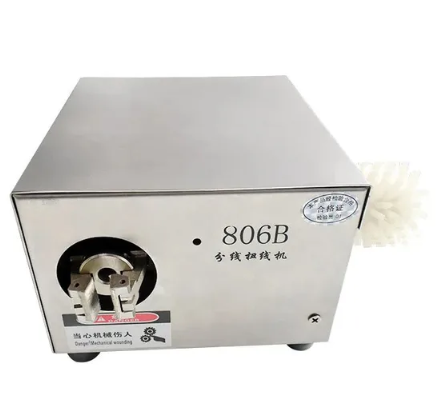 Станок для расщепления и скручивания проводов. Имеет более рациональную компоновку элементов механизма скручивания и расщепления, что обеспечивает удобство в эксплуатации и использовании. Интегрированная конструкция шатуна и центробежного зажима обеспечивает большую стабильность и безопасность в работе. Встроенный источник питания имеет более лаконичный и эстетичный внешний вид. Используется для экранирования проводов и кабелей. Применяется для обработки малогабаритного автоматизированного оборудования.