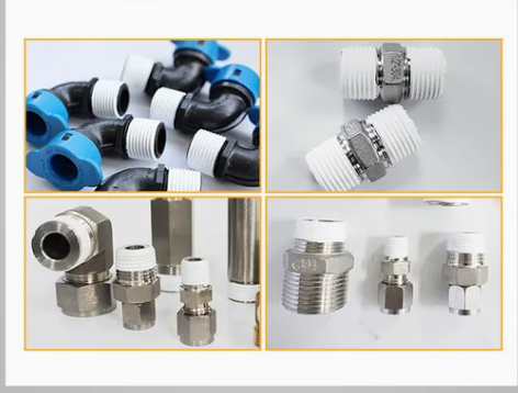 Это полностью автоматический станок для обмотки фитингов ПТФЭ-лентой. Оператору нужно лишь поместить резьбовое соединение в виброплощадку, и оборудование автоматически намотает ПТФЭ-ленту на фитинг.