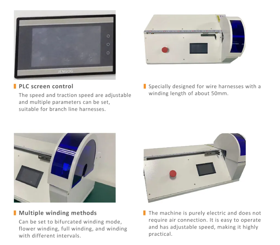 3. Станок оснащен сенсорным управлением на основе ПЛК, скорость намоточной головки, скорость перемещения тяги и другие параметры регулируются. Возможность одновременного ввода и сохранения нескольких параметров обеспечивает удобство использования различных изделий.