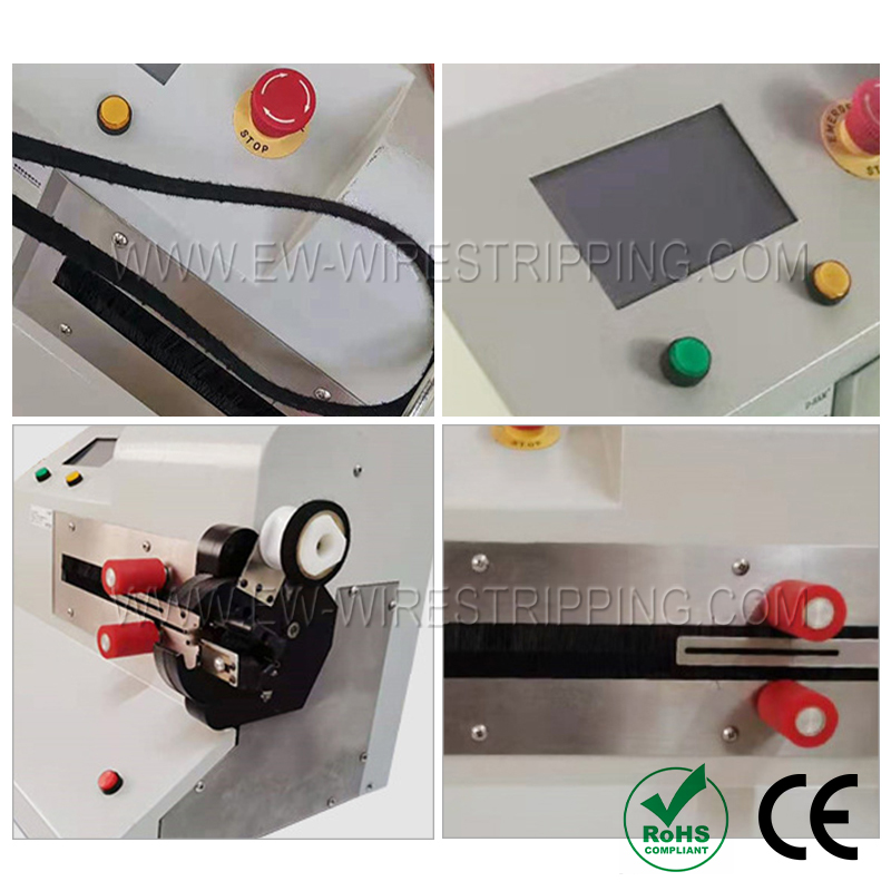 ● Простота использования: жгут проводов и ленты непрерывно обматываются лентой. Для этого оборудования достаточно просто вставить жгут проводов в намоточное отверстие, и лента автоматически обматывается в соответствии с заданной длиной и шагом. Он особенно подходит для непрерывной намотки длинных линий, а скорость более чем в 5 раз выше, чем при ручной намотке.