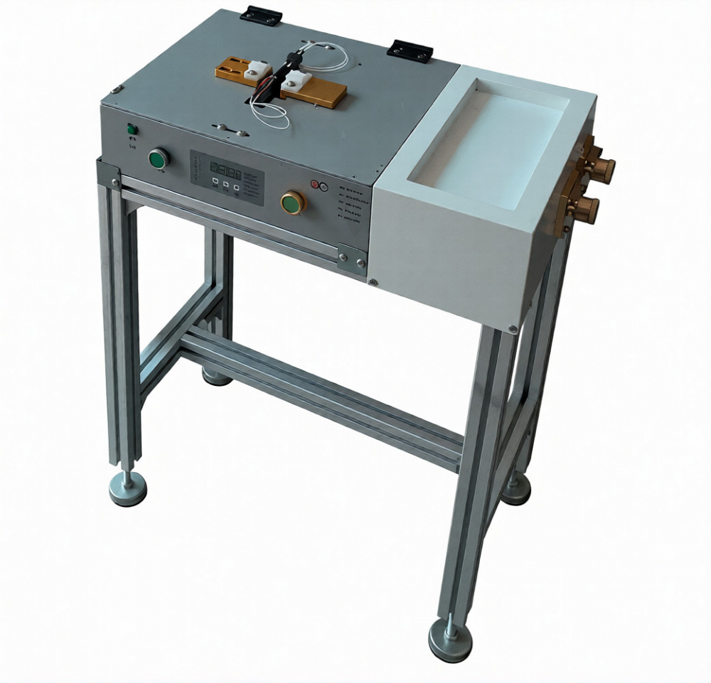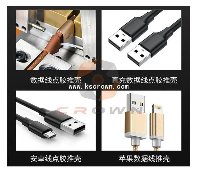 Это полуавтоматический пресс для нанесения защитных покрытий на USB-разъемы. Он подходит для обработки USB-разъемов из различных материалов, таких как алюминиевый сплав и ПВХ-кабели для передачи данных.