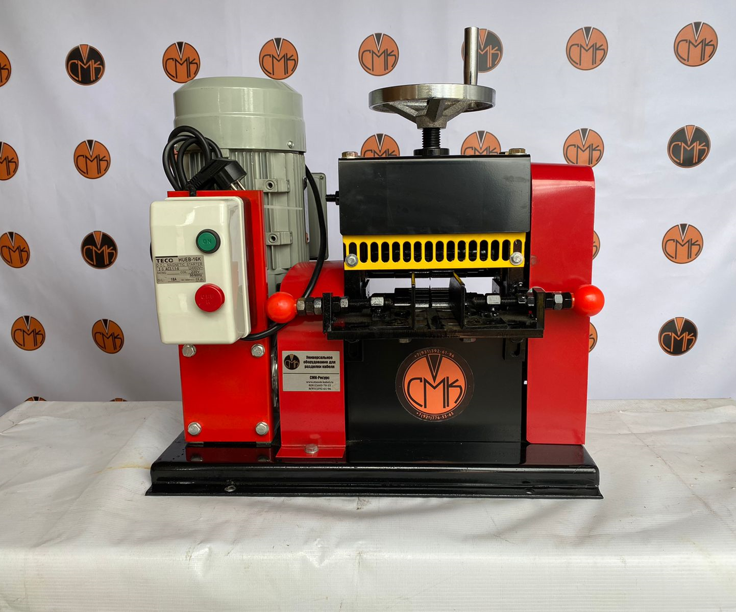 Станок для разделки кабеля 080 предназначен для разборки кабеля от 5 до 80мм. На станке установлено 2 вала на каждом из которых стоит нож. С двух сторон от ножа имеются сдвижные втулки при помощи которых увеличивается глубина реза ножа. Они фиксируются в двух положениях. Кабель на данном оборудовании разрезается пополам. Мощность станка 1.5 кВт позволяет разбирать любой вид изоляции и брони. Диаметр разбираемого кабеля регулируется поднятием верхнего вала при помощи маховика и регулировкой боковых направляющих пластин. Данный станок подходит для железной, алюминиевой и свинцовой брони.