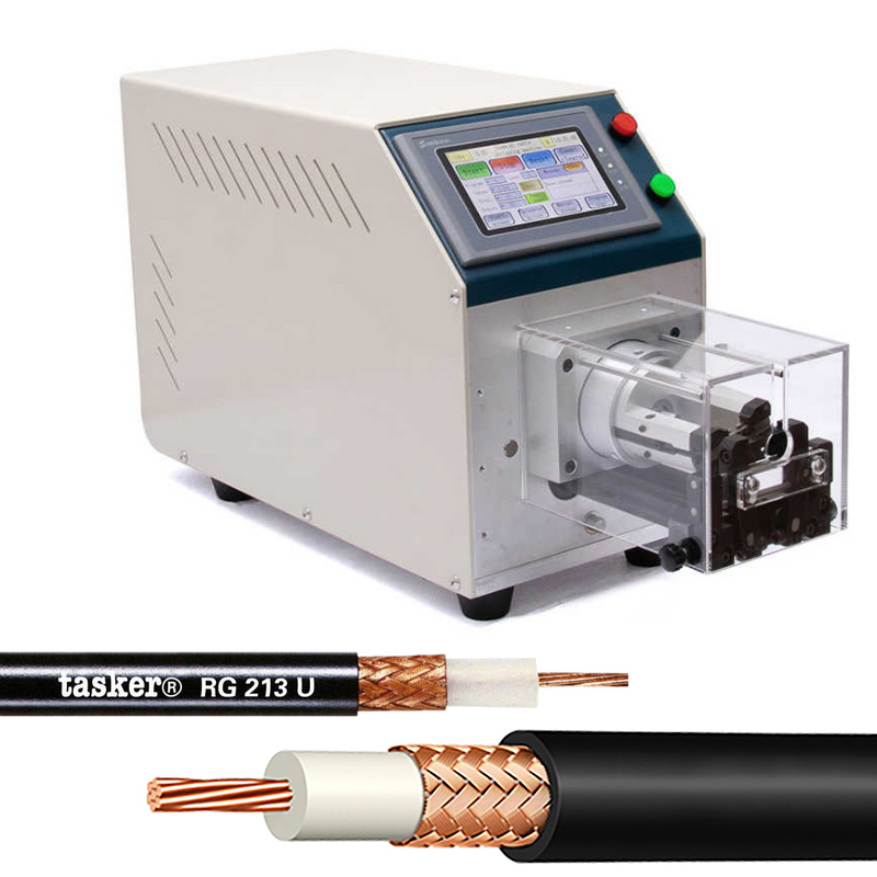 Станок EW-06F предназначен для резки и зачистки коаксиального провода. Максимальный диаметр провода 8 мм. Модель в первую очередь предназначена для резки и удаления внешней оболочки проводов с многослойной изоляцией, типа ПВС, ШВВП и пр.В станке установлен жидкокристаллический экран, что обеспечивает удобство при работе со станком в сочетании с точной и быстрой разделкой провода.
