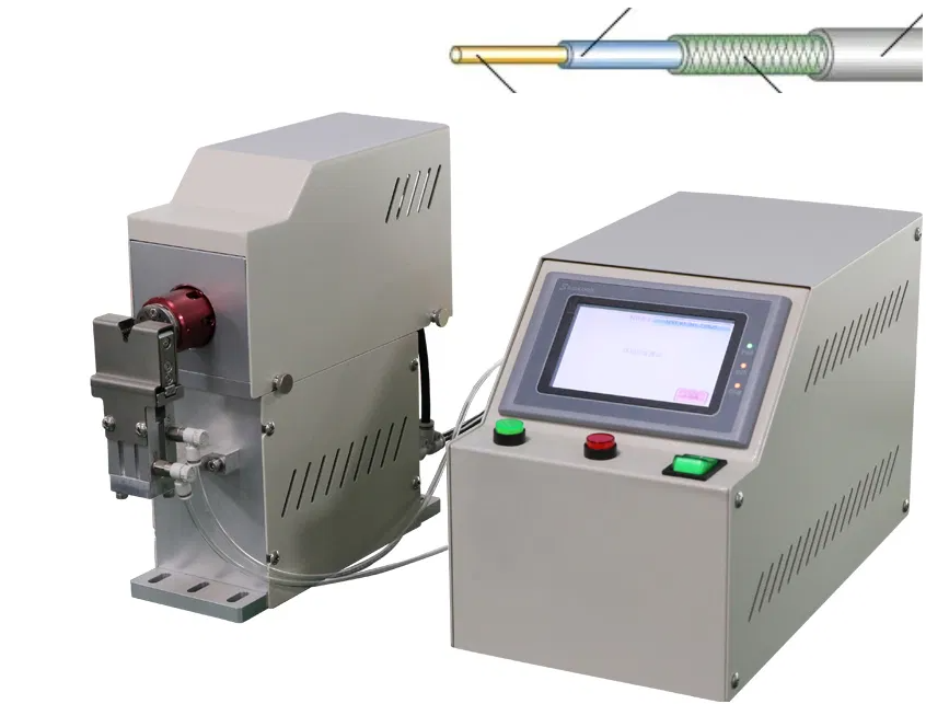 Данная машина, предназначенная для зачистки коаксиальных кабелей, может выполнять многосекционную зачистку, зачистку и скручивание, имеет автоматический последовательный запуск и другие специальные требования. Подходит для проводов диаметром 0,4-1,6 мм.