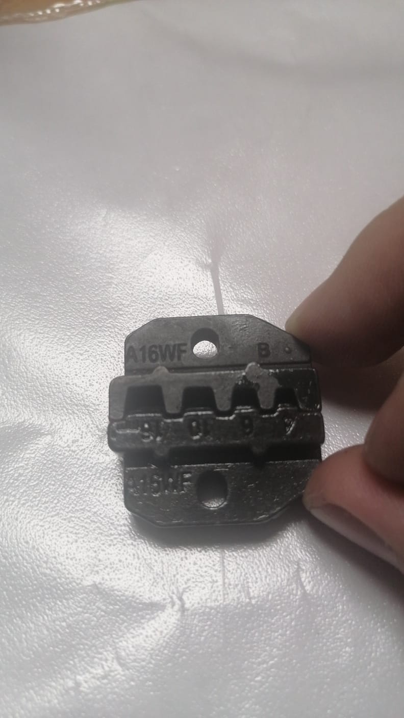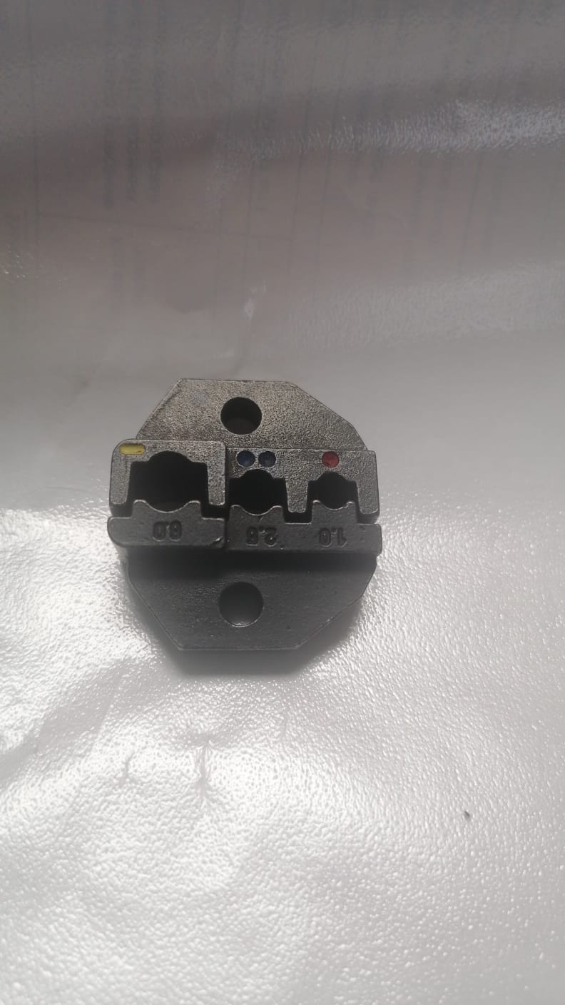 В качестве исполнительного инструмента работают выдвинутые приводные пассатижи, у которых нижняя челюсть зафиксированная, а верхняя – плавно подвижная. В полости каждой челюсти крепится двумя винтами пластина от пресс-матрицы. Поставщик по предварительной договорённости может обеспечить клиента любым видом такого штампа. Рабочая часть пассатижей в целях безопасности закрывается прочной прозрачной полимерной насадкой.