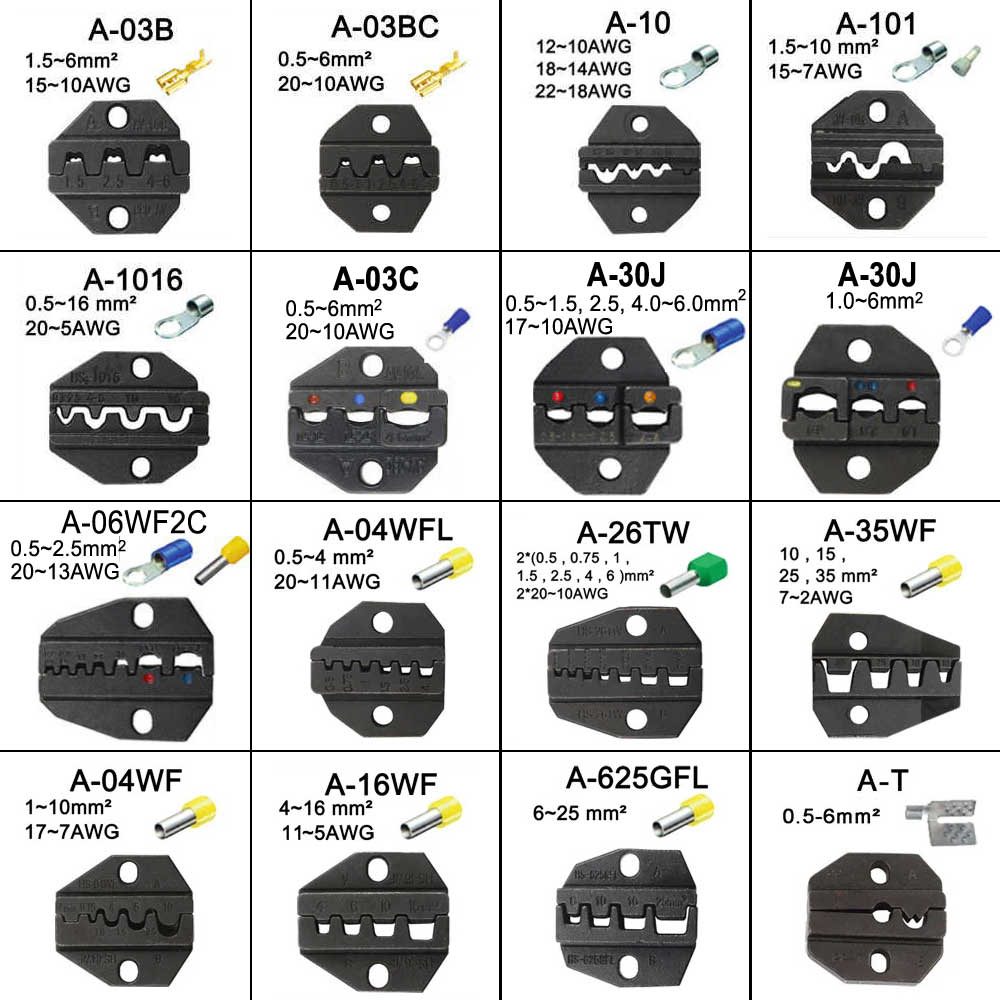 (1) Поместите обжимные клеммы в соответствующие наборы обжимных матриц.