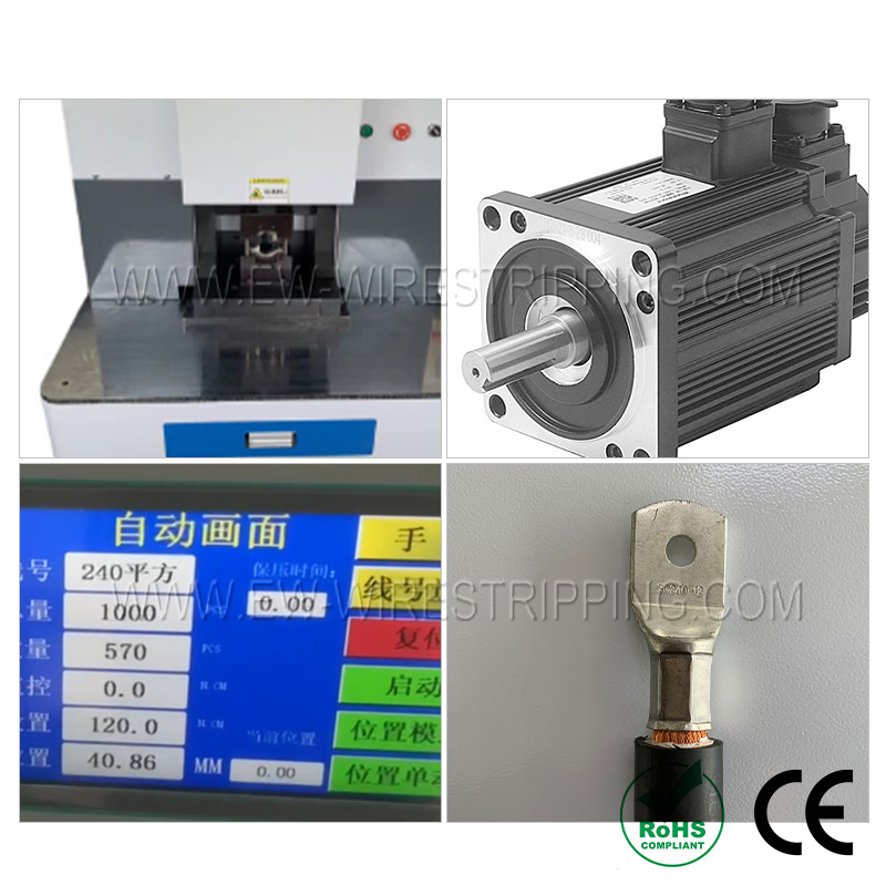 Сочетание серводвигателя и гидравлической технологии обеспечивает стабильное и высокое усилие обжима, подходящее для кабелей сечением до 300 мм² и соответствующих автомобильным стандартам.