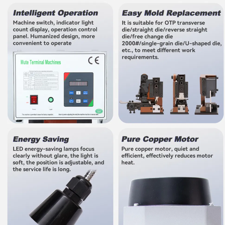 - Станок подходит для компьютерного терминала, терминала постоянного тока, терминала переменного тока, цепного терминала, флагового терминала.