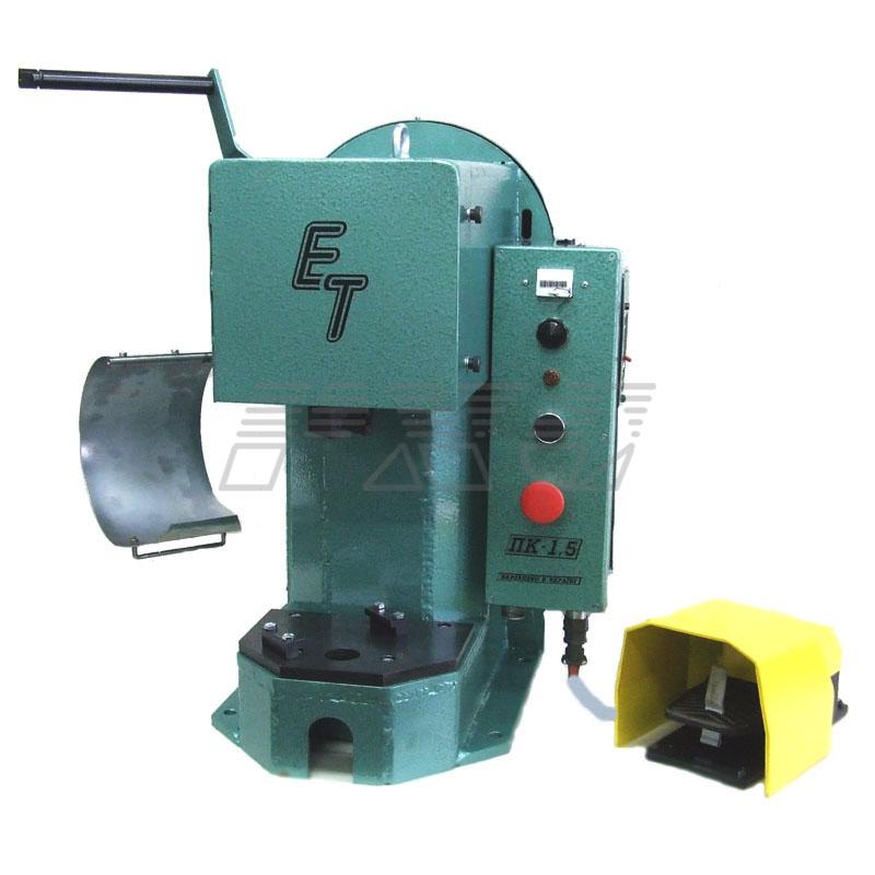 Компактный настольный электрический пресс с усилием 1,5 тонны ПК-1,5 - предназначен для опрессовки контактных зажимов, кабельных наконечников и скоб на монтажные провода сечением 0,2...6,0 мм2 , а также для штамповки мелких деталей из металлической ленты или вроссыпь (примеры).