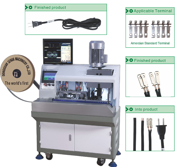 Зачистка проводов и соединение под давлением выполнены один раз и навсегда. Оснащен автоматическим блоком продувки воздухом и подачи масла, что позволяет сэкономить 3-5 рабочих часов по сравнению с исходным режимом работы, с преимуществом снижения несчастных случаев, экономии рабочей силы, повышения производительности, а также безопасности и экологичности. Любая неправильная подача кабеля может быть распознана автоматически. Воздушный цилиндр SMC; контроллер ПЛК Panasonic; сенсорный экран SIEMENS доступны для настройки по специальному запросу.