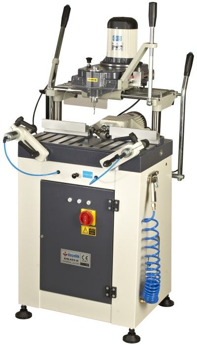 Копировально-фрезерный станок Ozcelik Galaxy II предназначен для фрезерования технологических отверстий в пластиковых пвх профилях под замки, ручки, петли, шпингалеты и водоотводящие каналы, а также для изготовления тройного сверления под оконную ручку. Специальные фиксаторы позволяют фрезеровать разные каналы независимо от шаблона. Копировально - фрезерный станок Озчелик Галакси II имеет пневматические прижимы профиля и пистолет для сдува стружки. Двухголовый копир для удобства работы можно снабдить системой рольгангов.