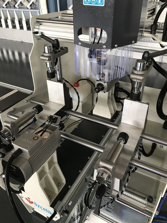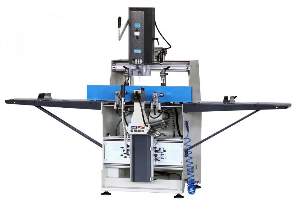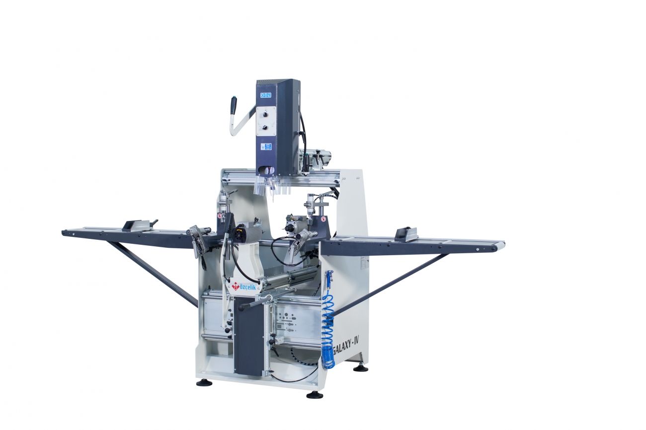 Копировально-фрезерный станок Ozcelik Galaxy IV предназначен для фрезерования технологических отверстий в пластиковых пвх профилях под замки, ручки, петли, шпингалеты и водоотводящие каналы. Станок имеет возможность создавать с помощью профильных шаблонов различные каналы независимо от механизма копирования, а также изготавливать тройное отверстие под ручки. Копировально - фрезерный станок Озчелик Галакси IV имеет пневматические прижимы профиля и пистолет для сдува стружки. Каждый из трех двигателей работает независимо.