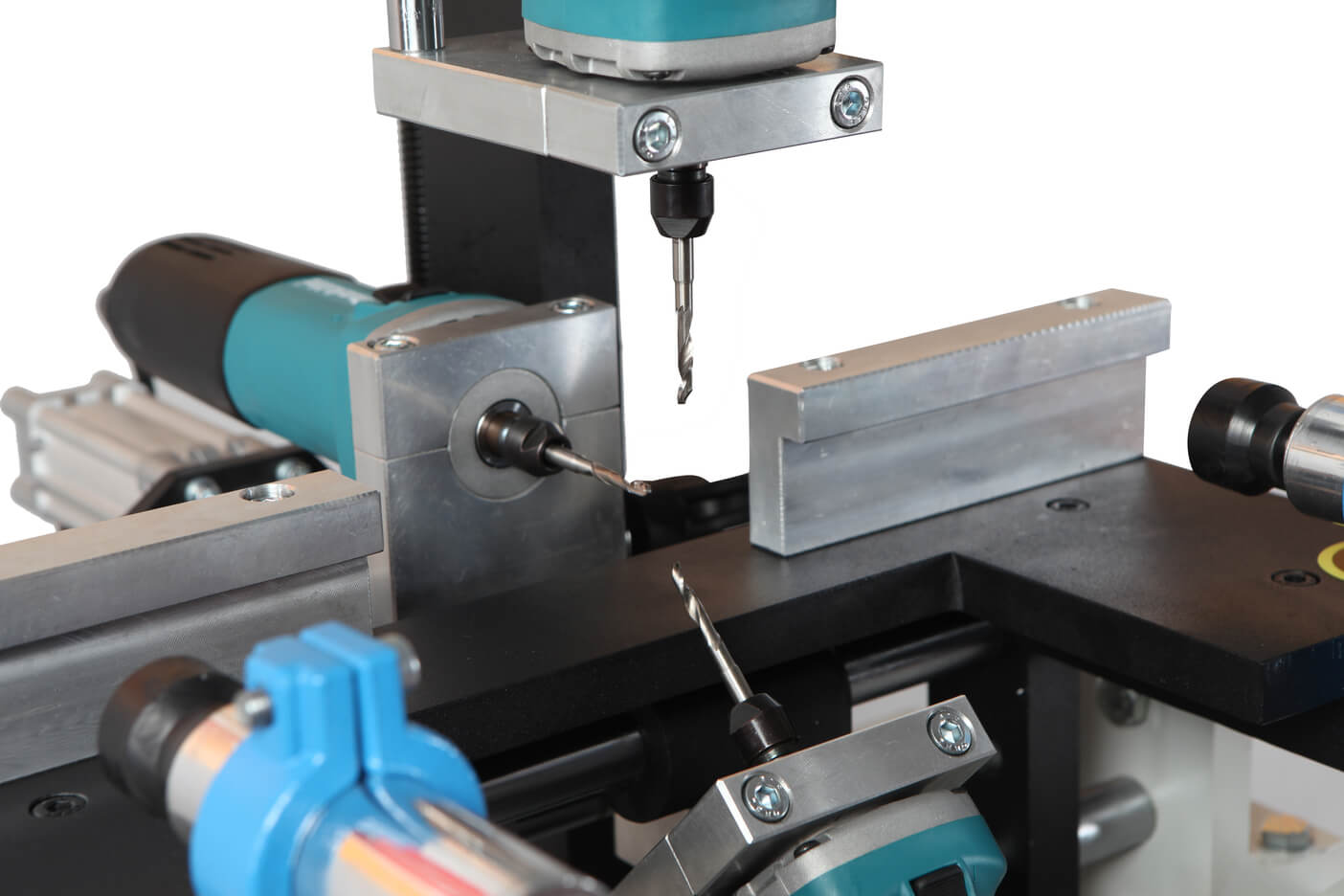 – Регулировку глубины и высоты фрезерных головок можно легко выполнить с помощью калиброванных креплений.