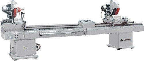 Этот станок, используемый для резки алюминиевого и ПВХ профилей, позволяет обработать профиль под углом в 45° в обе стороны или 90° за один раз.