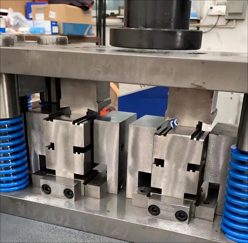 Оборудование для пробивки отверстий в алюминиевых профилях управляется с помощью электроавтоматики. Ножная педаль замыкания контактов для единичной штамповки необходима, чтобы оператор мог свободно манипулировать двумя руками.
