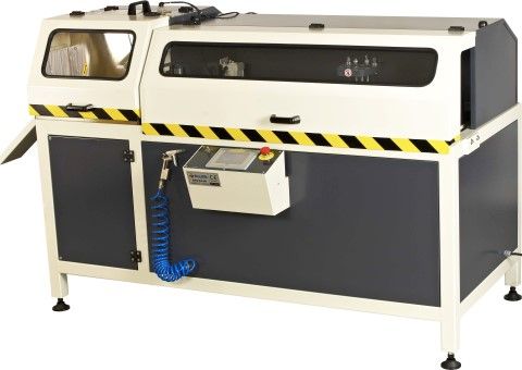 ÖZÇELIK DELTA-III – автоматический станок для нарезки профиля с выдвигающимся вперёд пильным диском Ø 500 мм предназначен для нарезки и распиливания оконных профилей, алюминиевых и ПВХ.