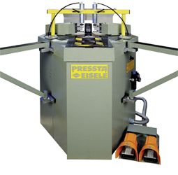 Пресс предназначен для сборки угловых соединений оконных и дверных рам из алюминиевого профиля методом опрессовки соединяемых элементов рамы на предварительно установленном угловом сухаре.