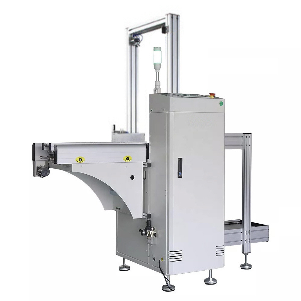 Тип L может загружать печатную плату под углом 90 градусов, что сокращает длину линии SMT. Кроме того, штабелер и компактный тип очень подходят для массовой загрузки печатных плат, что позволяет сэкономить много времени на погрузку и эксплуатационные расходы. Оснащен специальной всасывающей структурой подачи.