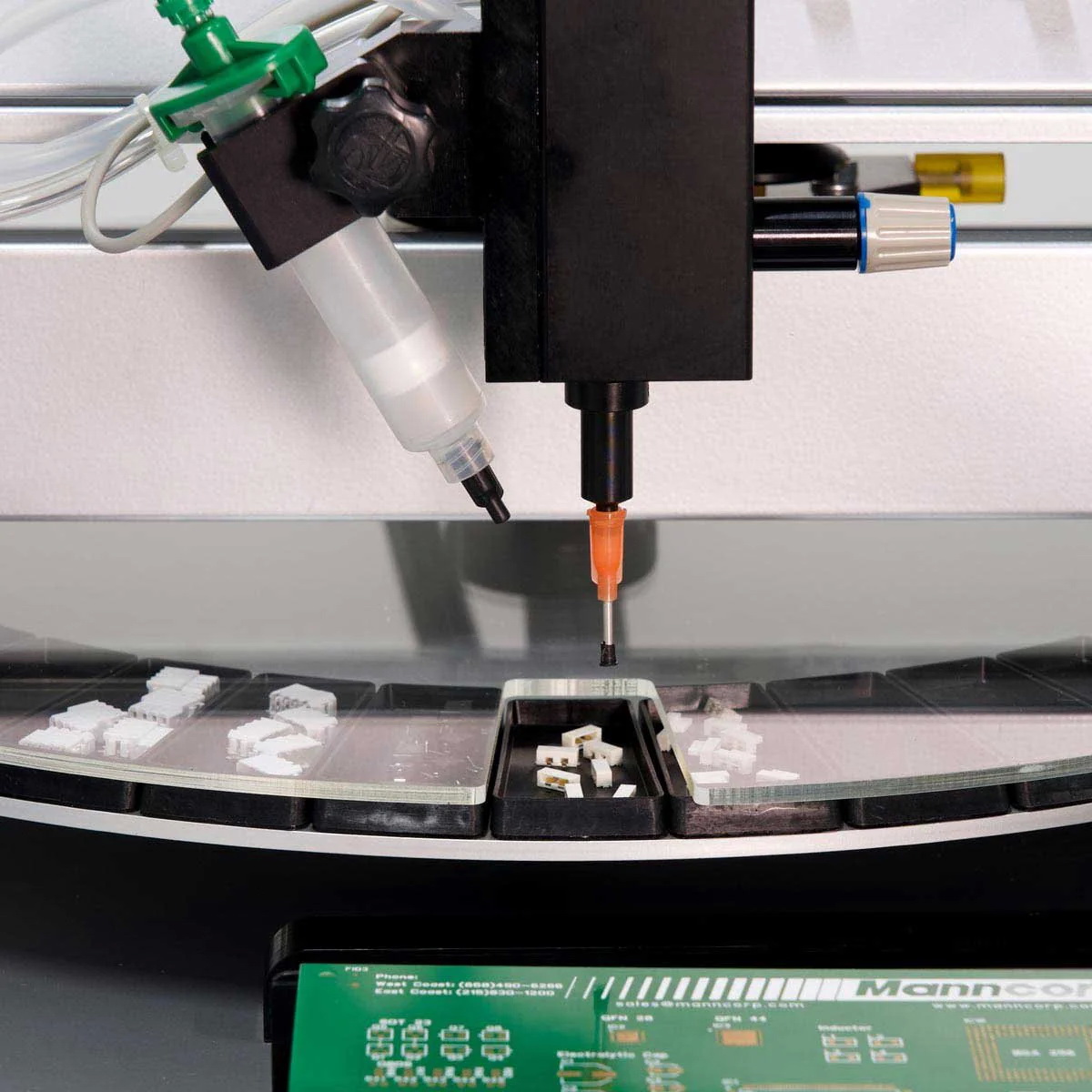 - Имеет функцию вакуумного всасывания смд компонента с последующей фиксацией его на печатной плате клеем