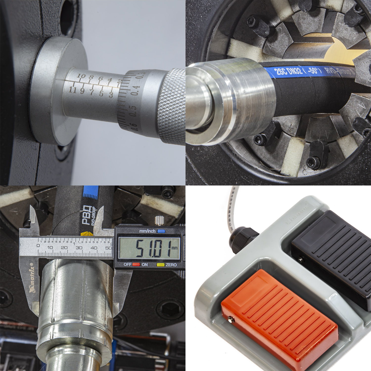 Обжимной станок для РВД DM 100 оптимален для сервисных мастерских. Практичный РВД станок подходит для обжима гидравлических шлангов до 2 дюймов, производительность до 100 об/час., прост в обслуживании и эксплуатации. Станок для опрессовки РВД имеет напольную конструкцию и удобное место для хранения 10 комплектов кулачков. Пресс отличается рядом авторских инженерно-технических решений, обеспечивающих качественный обжим, удобство и скорость работы, долговечность оборудования для изготовления РВД.