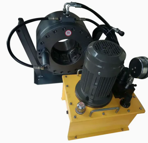Диапазон обжима этого станка составляет от 1/8" до 4", что делает его подходящим для широкого спектра шлангов, включая промышленные и гидравлические шланги. Благодаря двигателю мощностью 1,5 кВт и напряжением 380 В, он обеспечивает стабильную выходную мощность при сохранении энергоэффективности. В комплект входят 10 наборов матриц, что позволяет использовать шланги различных размеров и гарантирует точную обжимку для различных применений.