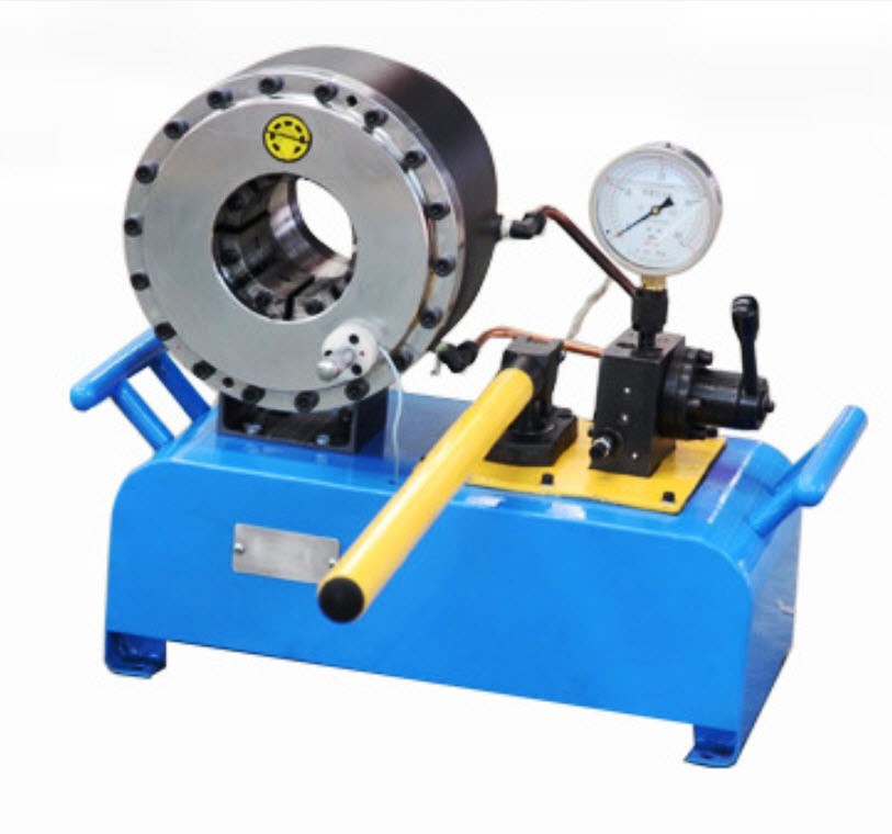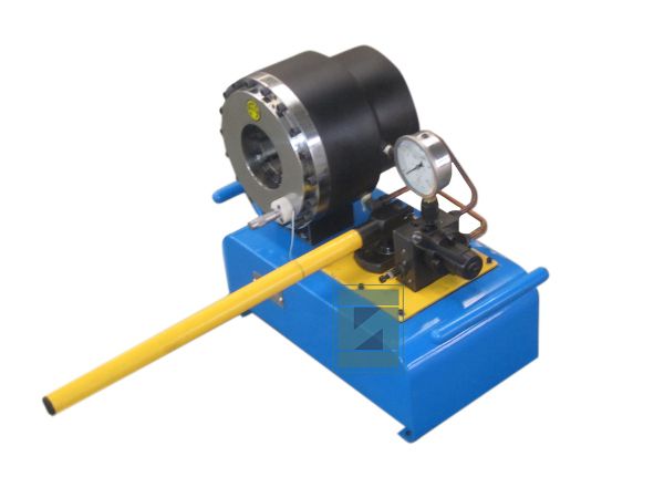 Техника оснащается насосом ручного типа, для работы не требуется подключения к электросети, поэтому ее применяют как в цехах, так и на выезде. Бак для масла вмещает до 3,5 л, вес устройства без учета рабочей жидкости составляет 90 кг, производитель дает год гарантии на саму модель и 10 лет поддержки в поставке запчастей и расходных материалов. Комплектация может дополняться ручками, облегчающими процесс переноски и погрузки оборудования. За счет доступной цены и легкости в использовании такая модель весьма востребована среди средних и малых компаний, работающих с РВД и трубопрокатом.