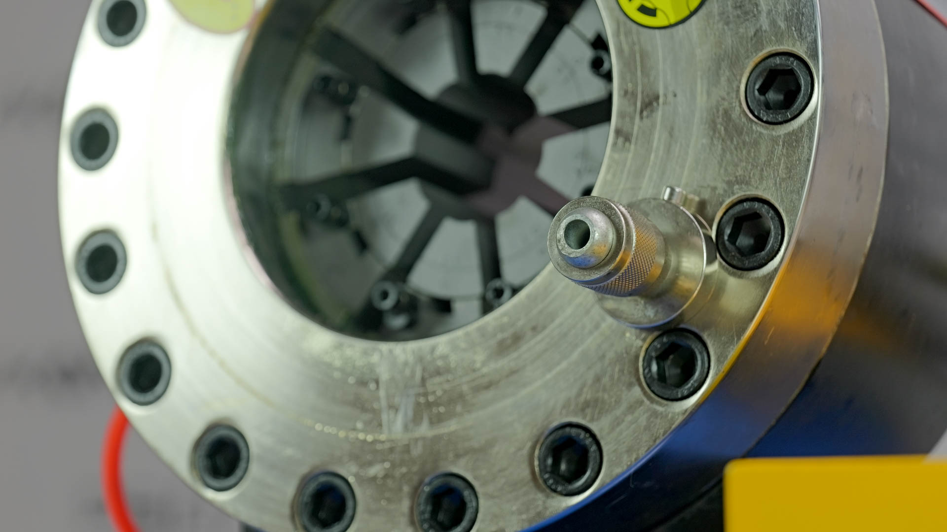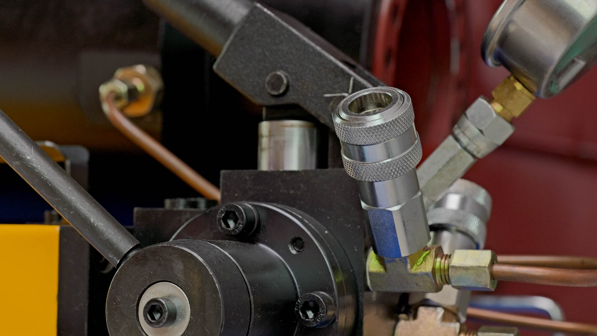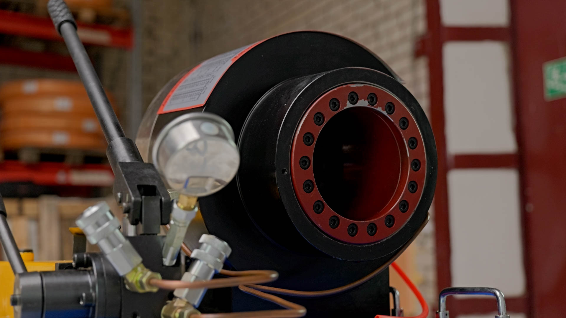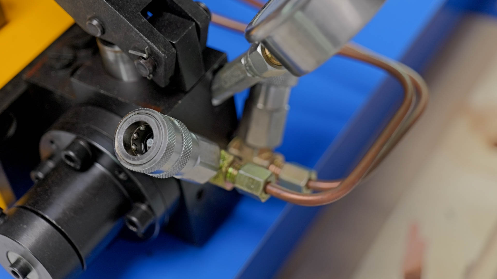 Рабочая скорость модели составляет порядка 18 секунд, на размыкание пресс-шайбы тратится не более 6 секунд. Устройство имеет производительный насос, который способен перекачивать до 10 л в минуту, для работы используется гидравлическое масло. Станок отличается компактными габаритами, его можно использовать как мобильное оборудование для опрессовки. Модель оснащена баком на 20 л, имеет скромные габариты и сравнительно небольшой вес (150 кг без учета рабочих жидкостей). Этот станок широко используется в сфере обслуживания строительной спецтехники, оборудования для добычи полезных ископаемых и в других отраслях, где требуется обжим РВД.