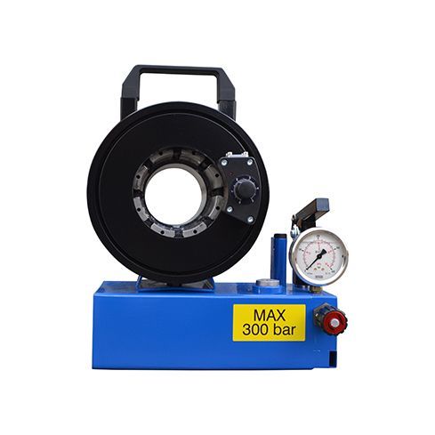 Легкий, ручной обжимной станок для производства рукавов высокого давления, спроектированный для работы в полевых условиях и в мастерских без использования электроэнергии.