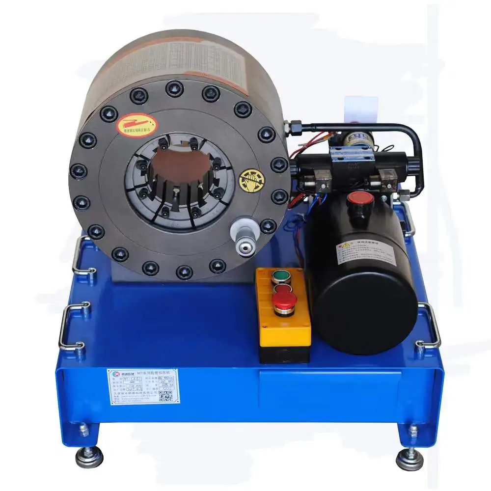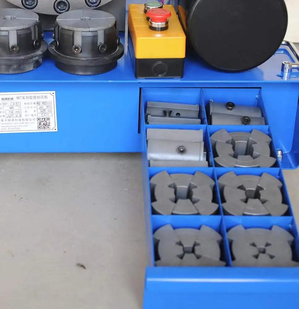 Станок для обжима РВД MT-51CZ может быть доукомплектован стандартными или специальными матрицами, ручками для быстрой замены, портативным диспенсером, выдвижным диспенсером, зеркалом заднего вида и т.п. Ограничитель отвода, чтобы можно было быстрее выполнить повторный обжим за счет ограничения хода матрицы – тоже опция. Можно добавить клапан удержания/возврата, что даст оператору возможность работать в толковом режиме, и держать его во время настройки. Дополнительный стеллаж для хранения штампов обеспечивает порядок и доступность штампов. Дополнительный магнитный инструмент для замены штампов делает замену штампов быстрой и беспроблемной операцией. Чтобы предотвратить деформацию внутренних поверхностей мусором, можно для защиты поставить прокладки из пеноматериала.
