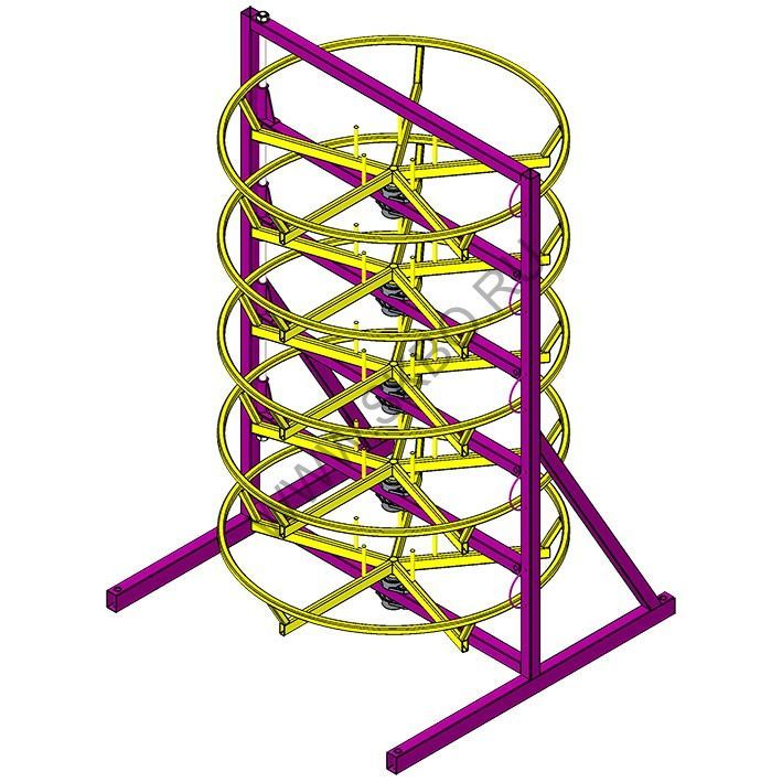 Стеллаж СРВД-6 - это разборное устройство для хранения и размотки шести бухт рукавов высокого давления, резиновых шлангов и прочих упругих длинномерных материалов. Бухты размещаются на технологических барабанах, на шести ярусах. Для удобства загрузки и выгрузки технологических барабанов, ярусы сделаны выдвижными с фиксацией в плоскости стеллажа.