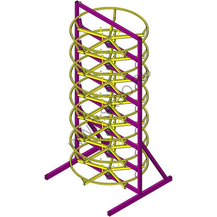 Стеллаж СРВД-7 - это разборное устройство для хранения и размотки семи бухт рукавов высокого давления, резиновых шлангов и прочих упругих длинномерных материалов. Бухты размещаются на технологических барабанах, на семи ярусах. Для удобства загрузки и выгрузки технологических барабанов, ярусы сделаны выдвижными с фиксацией в плоскости стеллажа.