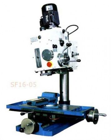 СФ-16-05 настольный фрезерно-сверлильный станок с коробкой передач для переключения скорости шпинделя, наклоняемой сверлильной головкой и наличием механических подач шпинделя.Станки настольные фрезерно-сверлильные с ручным управлением моделей СФ16, СФ16-02, СФ16-05 предназначены для всех видов фрезерных работ, а также сверления рассверливания, зенкерования, зенкования и нарезания резьбы машинными метчиками. Обработка производится быстрорежущим и твердосплавным инструментом в деталях из различных конструкционных материалов и из неметаллических материалов.