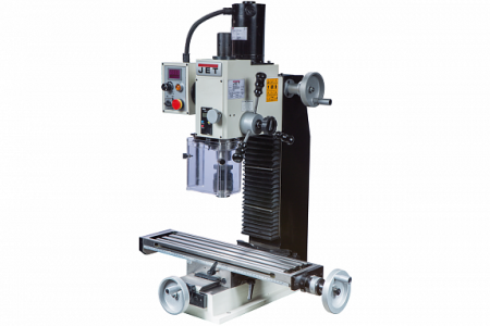 Фрезерно-сверлильный станок JMD-16S выполнен в настольном исполнении и предназначен для обработки заготовок из стали, сплавов, цветных металлов, а также других твердых материалов методом фрезерования и сверления. Станок предназначен для эксплуатации частными мастерами, в небольших мастерских, в школьных классах или классах профильных вузов. Не смотря на сравнительно компактные размеры, станок имеет массивную станину для большей устойчивости и снижения вибраций при работе. На JMD-16S можно сверлить заготовки сверлом до 16 мм, максимальный диаметр торцевой фрезы – 35 мм, концевой – 16 мм. Ход пиноли шпинделя – 50 мм. Рабочий стол станка имеет размер 400x190 мм и может перемещаться по осям Х и Y на 550 и 130 мм соответственно. Предусмотрено устройство цифровой индикации перемещения по оси Z. Для расширения возможностей станка предусмотрен механизм наклона фрезерной головы на 90 градусов вправо/влево. JMD-16S подключается к бытовой электросети 230 и оснащается экономичным электродвигателем мощностью 0,6 кВт. Частота вращения шпинделя может плавно выбираться из диапазона 100 – 2500 об/мин. В комплект поставки станка входит все необходимое для его быстрого запуска в работу.