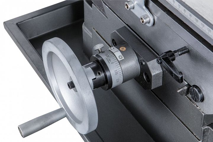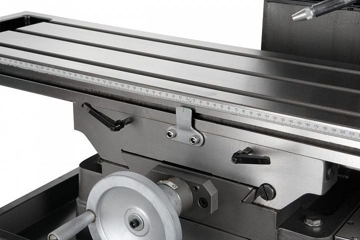 Модель JMD-45LPF оснащена рабочим столом размером 1000 x 240мм, который перемещается по направляющим типа ласточкин хвост и имеет возможность перемещения по осям X, Y на величину 760мм и 190 мм соответственно. На столе имеется три Т-образных паза шириной 14 мм для закрепления деталей прихватами или установки тисков и других приспособлений.