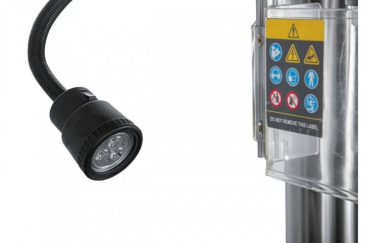 Станок оснащен автоматической подачей пиноли шпинделя, имеет 3 скорости - 0,12; 0,18; 0,25 мм/об. Наличие микрометрической подачи, позволяет установить инструмент на необходимую глубину в ручном режиме. Максимальный вылет пиноли шпинделя составляет 120 мм.