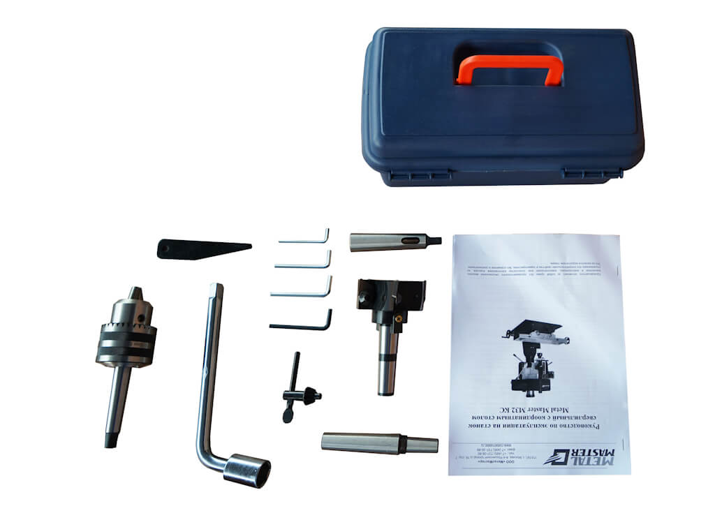 В стандартную комплектацию входят: инструментальный ящик, сверлильный патрон, торцевая фреза, инструкция на русском языке.