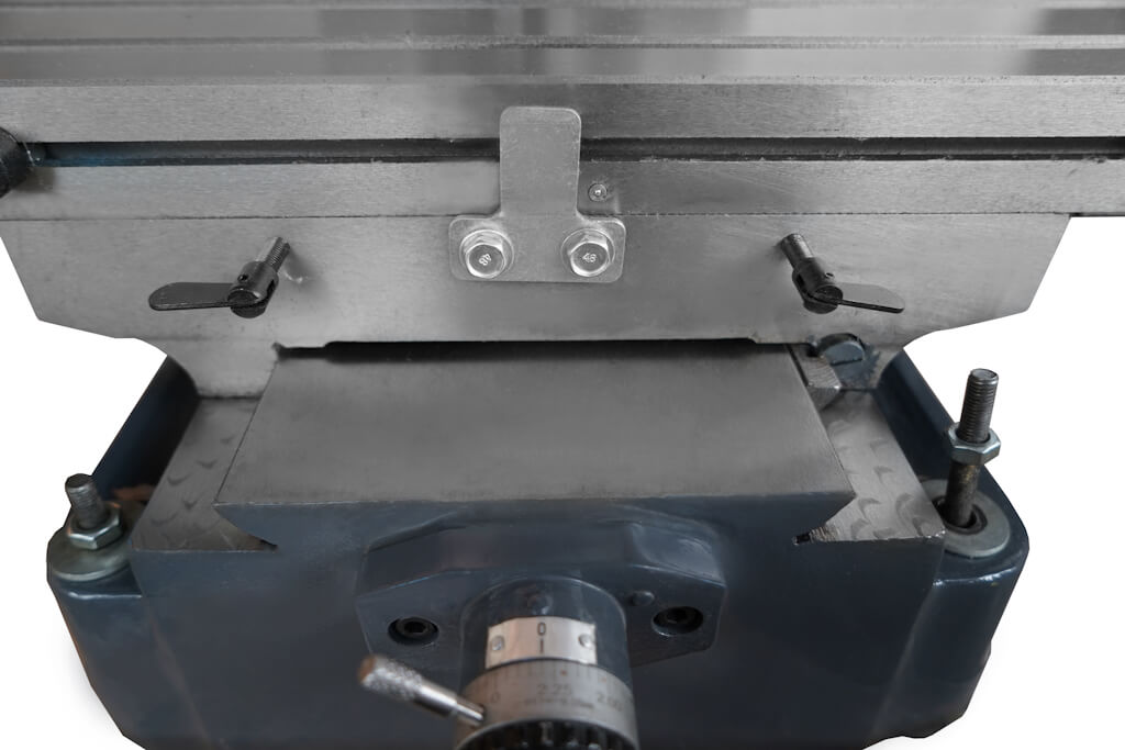 Перемещение стола можно зафиксировать с помощью специальных винтов. Также, стол оснащен ограничителем хода по оси X.