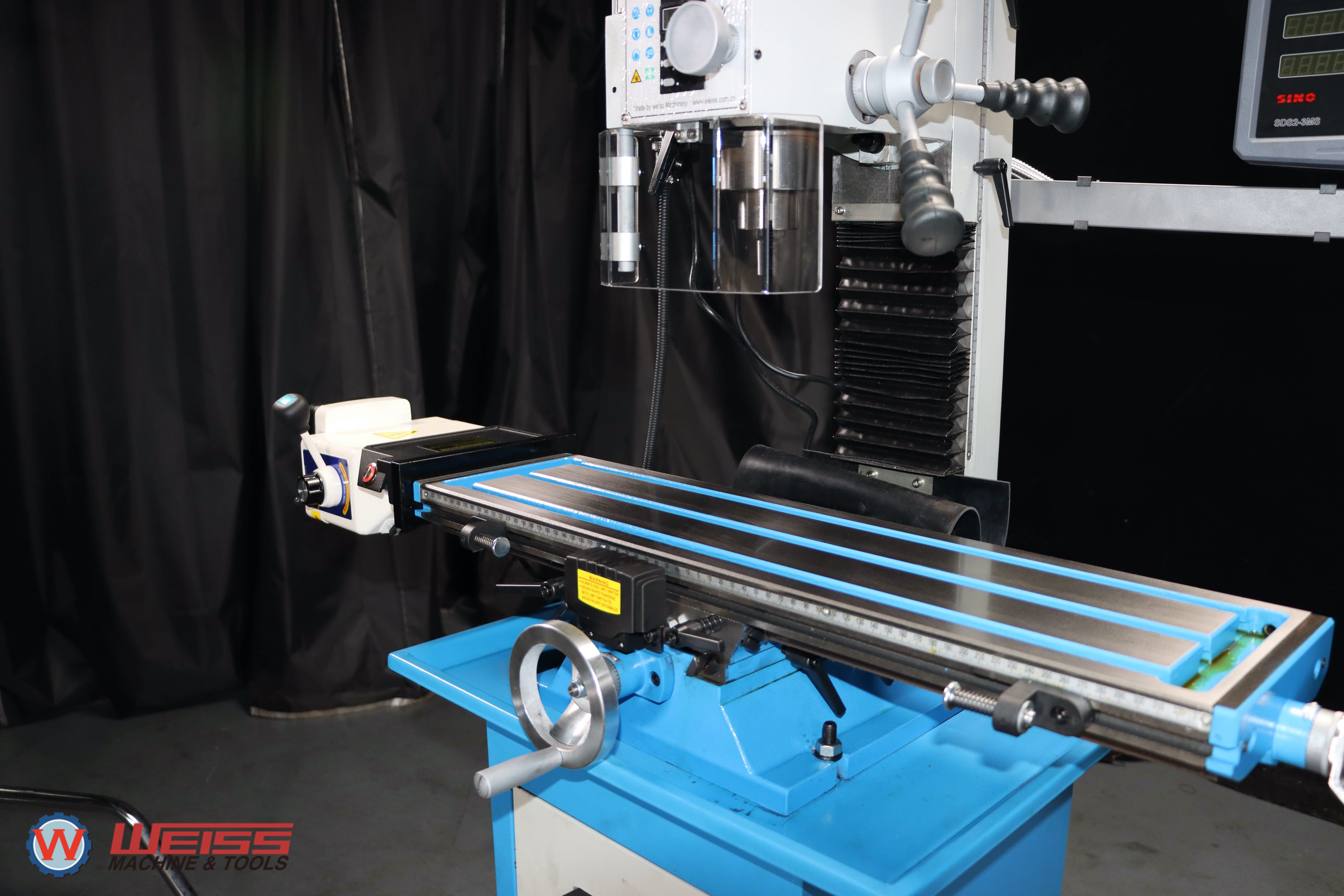 - устройство цифровой индикации DRO SINO SDS2-3MS с магнитными линейками SINO, ножная педаль (включение реверса шпинделя) и устройство автоматической подачи рабочего стола по оси X позволяют повысить производительность труда и точность обработки, добавить больший комфорт работе;